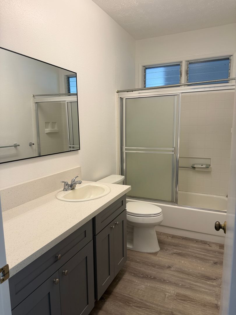 This well-maintained 2BR/2BA home was recently updated with luxury vinyl plank flooring throughout, modern kitchen and bathroom cabinets with quartz countertops, and fresh paint. Two full bathrooms inside the home, bonus covered lanai off carport and laundry area; additional toilet room in carport.