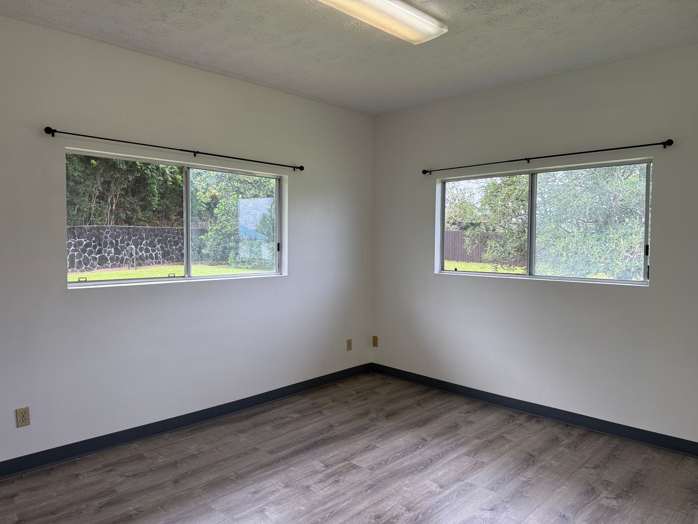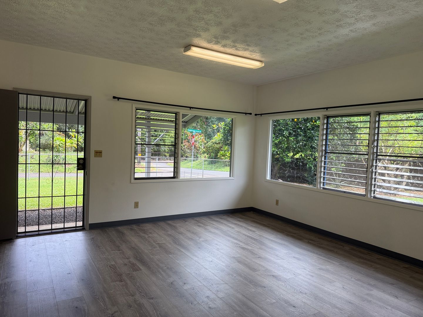 Fully fenced and gated. This is the Ohana home on the property. Main home is managed by Hilo Realty and occupied by a good tenant. Water and yard service included in the rent.